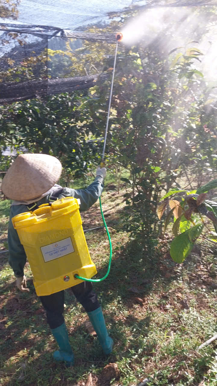 | 10-12-2024 12:12:00 | Bảo vệ thực vật | Tiến hành phun chế phẩm sinh học Anisaf 01, 02 và 03 để phòng trừ các loại sâu hại, các bệnh về nấm và virus gây ra cho cây. Cách dùng: pha tỉ lệ 200ml mỗi loại chế phẩm /20 lít nước phun cho toàn bộ vườn | Hoàn thành | |