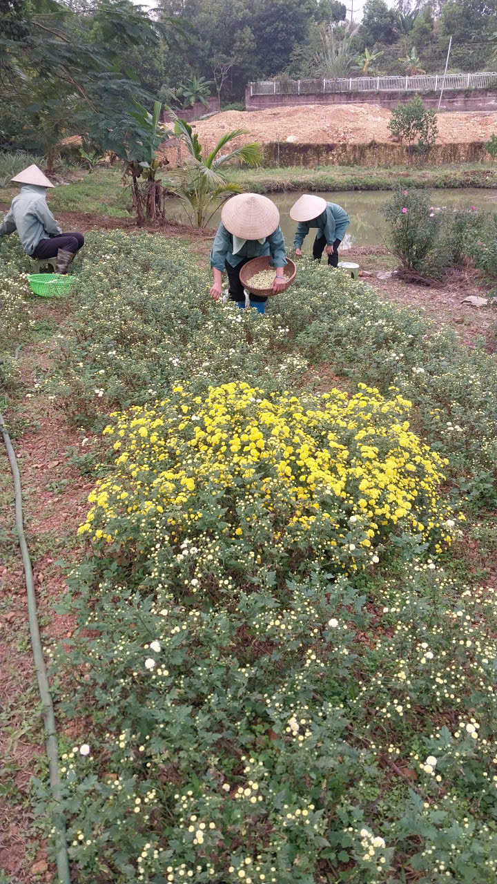 | 21-12-2025 12:12:00 | Thu hoạch | Tiếp tục tiến hành thu hoạch hoa cúc. Tổng khối lượng thu được sau khi sấy thu được 1.2Kg hoa cúc khô. | Hoàn thành |