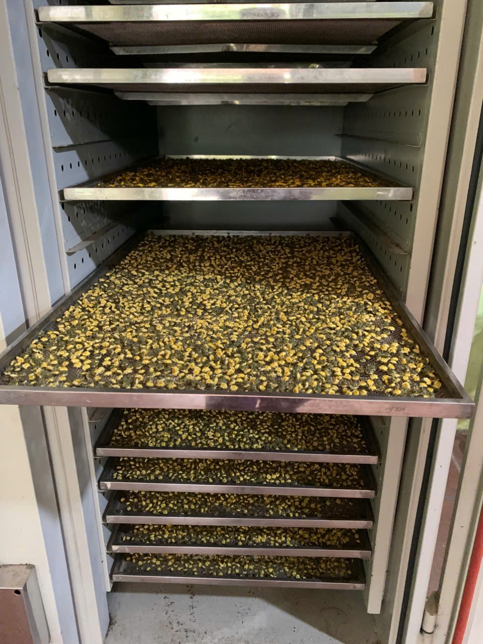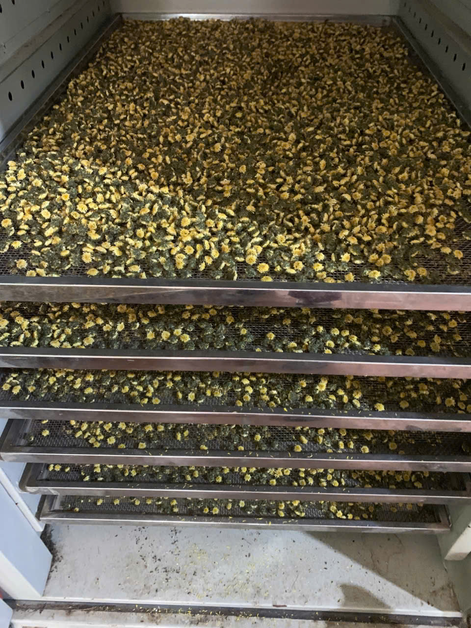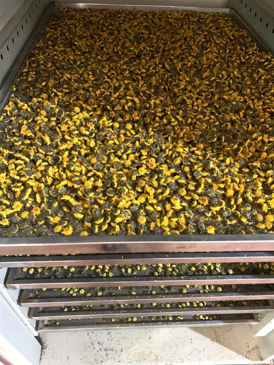 | 07-12-2025 12:12:00 | Phơi sấy công nghiệp | Hoa cúc sau khi hái, được phơi ráo rồi đem sấy trong lò sấy để đảm bảo được màu sắc, hương vị, và dược tính nguyên vẹn. | Hoàn thành | |