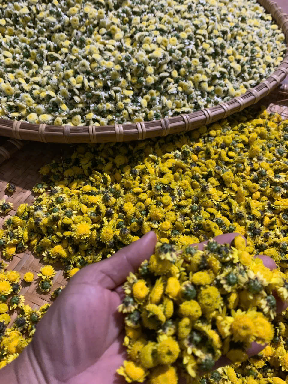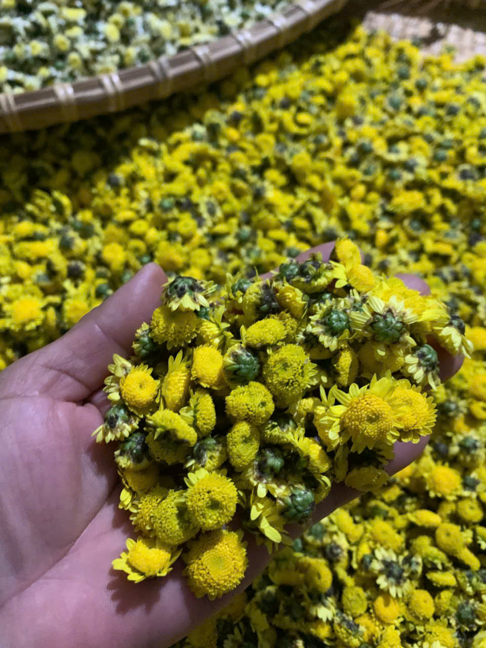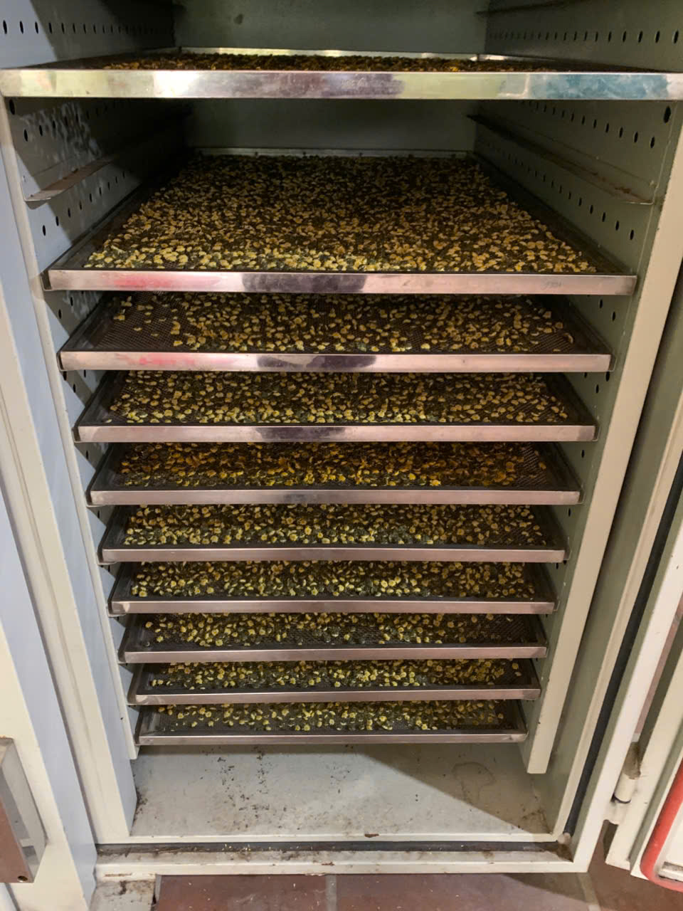 | 07-12-2025 12:12:00 | Phơi sấy công nghiệp | Hoa cúc sau khi hái, được phơi ráo rồi đem sấy trong lò sấy để đảm bảo được màu sắc, hương vị, và dược tính nguyên vẹn. | Hoàn thành | |