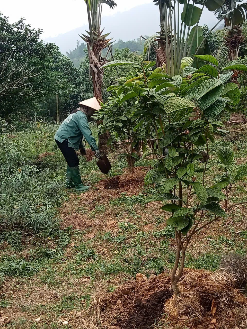 | 05-08-2025 12:08:00 | Bón Thúc | Tiến hành bón phân cho một số khu vực cây Trà Hoa Vàng phía trên cùng. Loại phân được sử dụng là phân chuồng ủ hoai mục. Lượng dùng: Mỗi gốc 1 - 1,5 kg phân, tùy độ lớn của cây. Cách bón: Đào rãnh hình vành quanh gốc cây theo đường kính tán lá (cách gốc 20cm). Bón phân xong lấp đất lại. | Hoàn thành | |