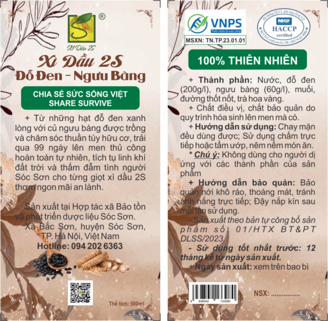 | 01-07-2025 12:07:00 | Vùng nguyên liệu | Giới thiệu về sản phẩm Xì dầu 2S Đỗ đen Ngưu bàng: Xì dầu 2S Đỗ đen - Ngưu bàng là sản phẩm lên men thủ công truyền thống kết hợp quy trình khoa học kỹ thuật ứng dụng Dược liệu vào sản phẩm. Sản phẩm chứa hoàn toàn các thành phần tự tự nhiên, không dùng chất bảo quản và các chất điều vị tổng hợp. Sản phẩm xì dầu có chất lượng tốt, có hương vị thơm ngon, phân tích cho thấy giữ các được các hoạt chất trong nguyên liệu. Xì dầu cũng chứa (sản sinh ra) các sorbate có thể bảo quản và các glutamate đóng vai trò chất điều vị. | Hoàn thành | |