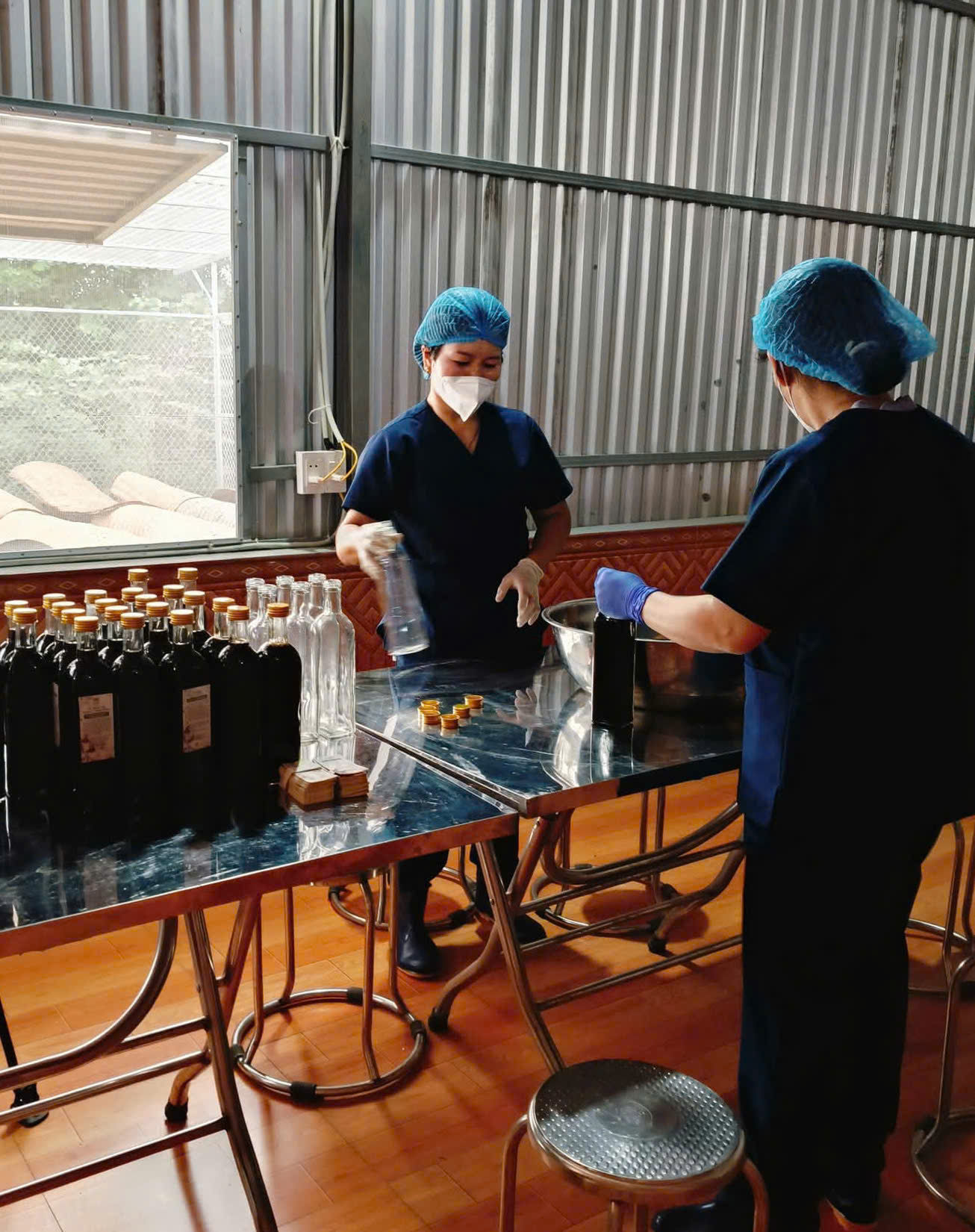 | 05-07-2025 12:07:00 | Kiểm tra chất lượng nguyên liệu đầu vào | Nguyên liệu để sản xuất xì dầu 2S gồm: Nước, đỗ đen (200g/l), ngưu bàng (60g/l), muối, đường thốt nốt, trà hoa vàng. Hai thành phần chính là đỗ đen và ngưu bàng được trồng theo hướng hữu cơ và thu hái từ Vườn dược liệu Sóc Sơn. | Hoàn thành | |