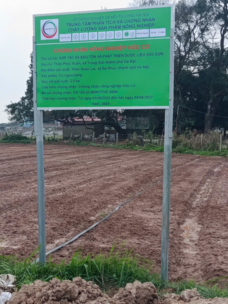 | 30-10-2025 12:10:00 | Thao tác kỹ thuật | Hình ảnh khu trụ sở chính của HTX Bảo tồn và Phát triển Dược liệu Sóc Sơn và vùng trồng nguyên liệu Ngưu Bàng tại xã Xuân Thu thuộc HTX. | Hoàn thành | |