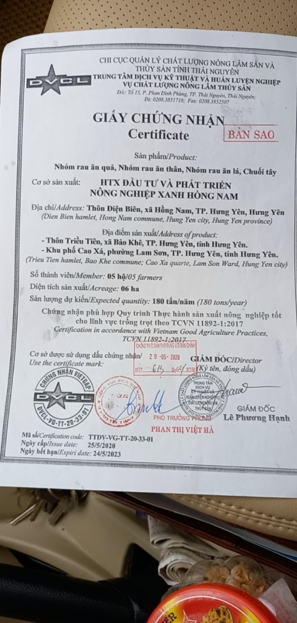 Hợp tác xã đầu tư & phát triển nông nghiệp xanh Hồng Nam : VF ID 89.0039